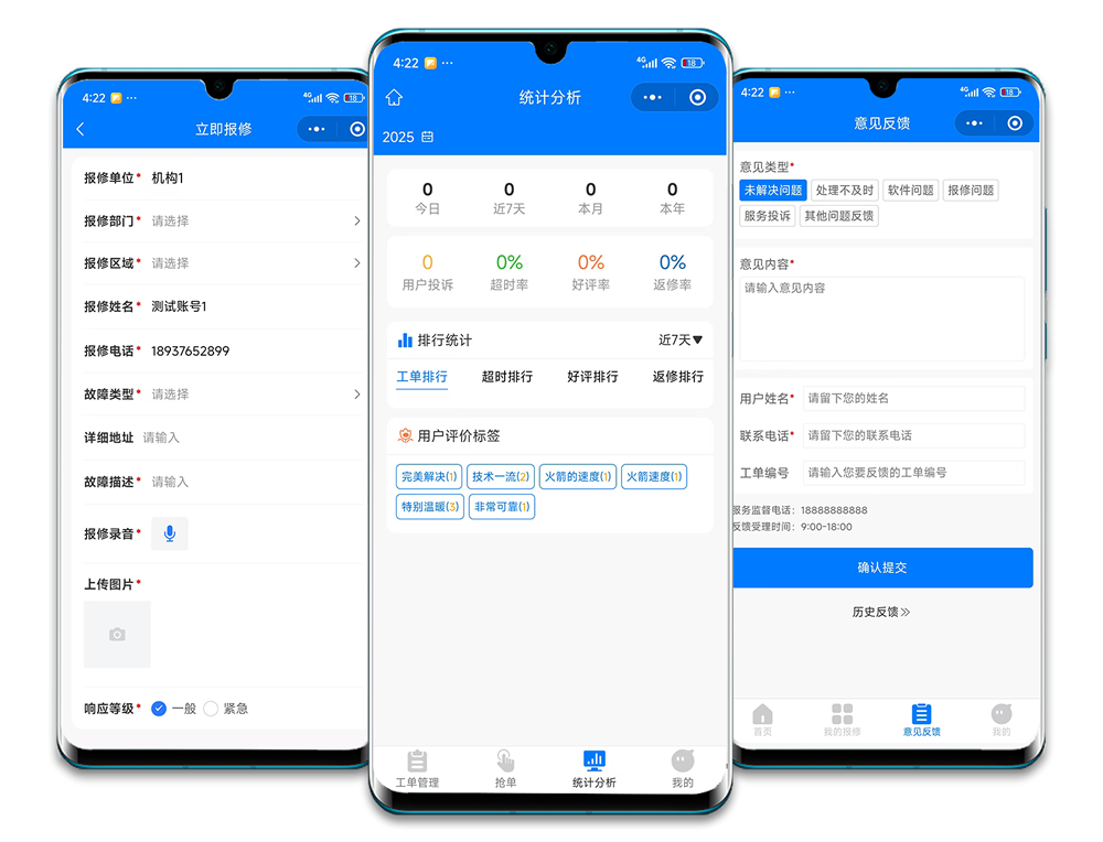 線上多渠道報修,線下工單流轉管控過程,提高工作效率和服務質量